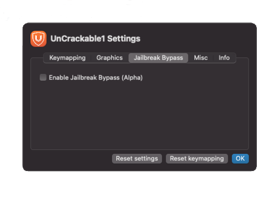 Other things we can configure include the device that is being emulated along with its screen size, key-mapping and even a built-in Jailbreak detection bypass.